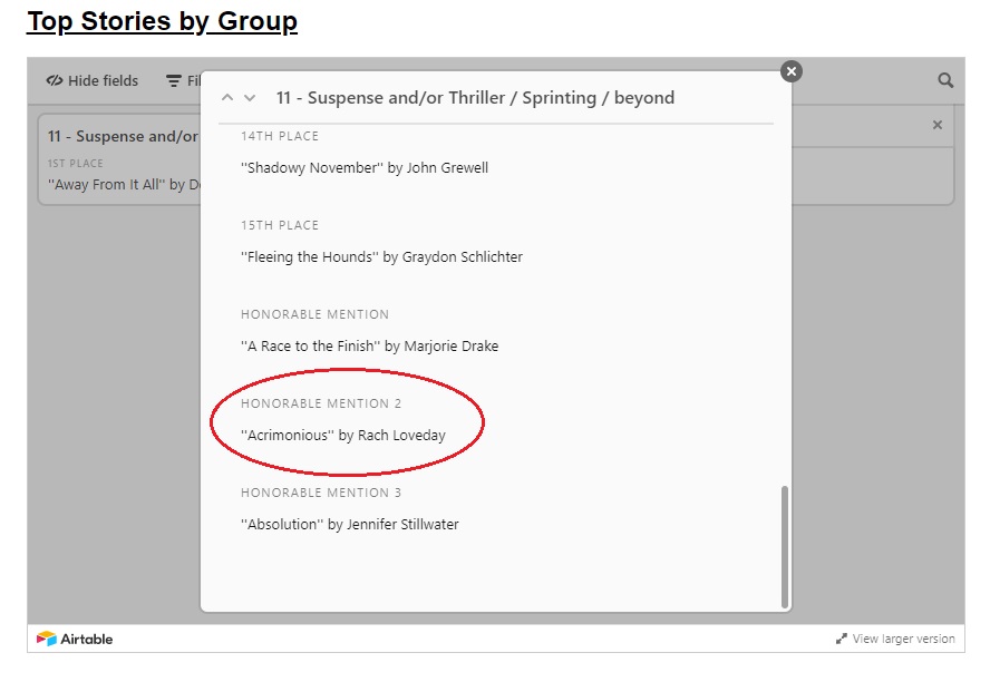 A part of entry is receiving feedback from the judges on your story, whether you make it to the next round or not. The feedback I received from the judges on my story can be found below.