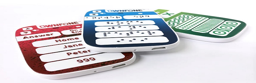 OwnFone’s world first Braille phone has the same purposes, only it stores up to three contacts and their names are printed in Braille. This is done by having the buttons made in different textures to the other OwnFone mobile phones. Visually impaired customers have already tested the mobile phones, one being a young boy who has gained confidence with going out and staying at parties, now that he is able to call his parents easily.