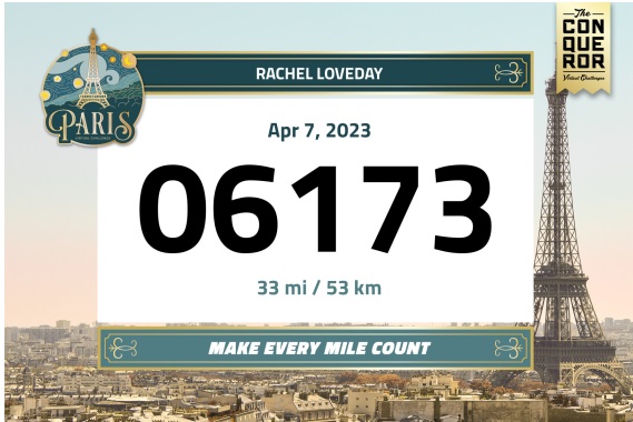 I have since completed my ninth Conqueror Virtual Challenge – Paris.
