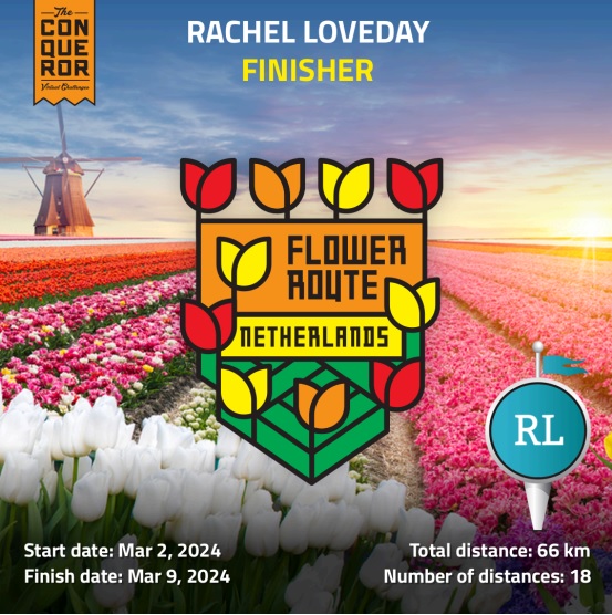 I have since completed my sixteenth Conqueror Virtual Challenge – Flower Route.