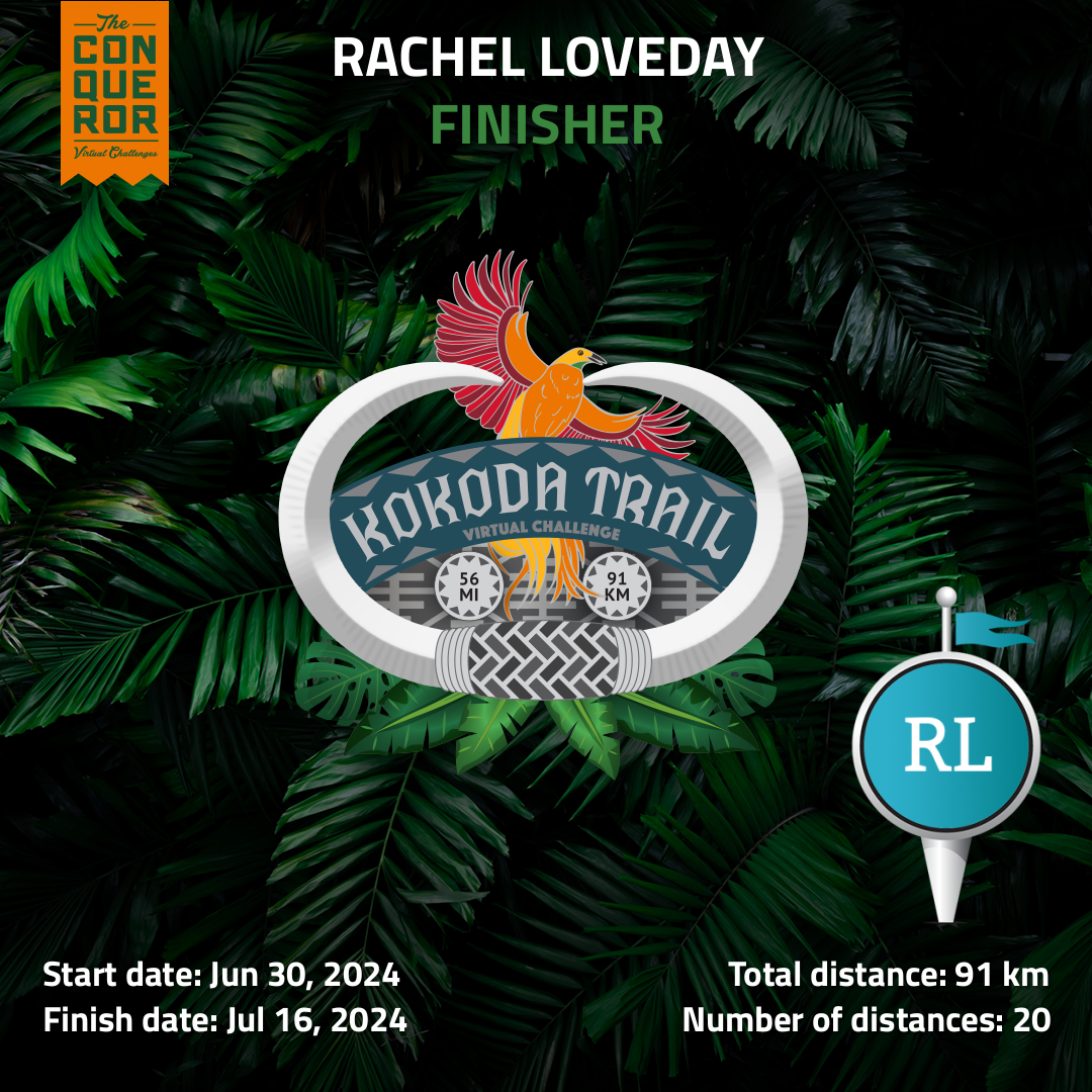 I have since completed my twenty-seventh Conqueror Virtual Challenge, Kokoda Trail.