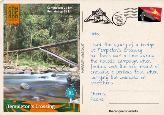 The Kokoda Trail Virtual Challenge takes participants “from Kokoda town to Owers’ Corner through Papua New Guinea’s extraordinary natural settings. One of the world’s greatest treks, it is renowned as the location of the battles between Australian and Japanese forces in 1942.”