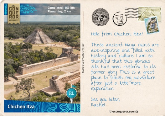 I have since completed my thirty-seventh Conqueror Virtual Challenge, Chichen Itza.