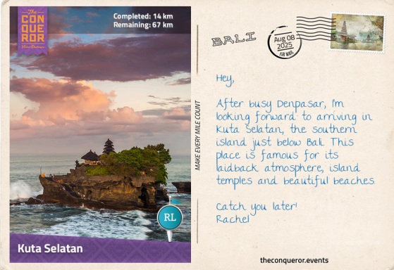 I have since completed my forty-third Conqueror Virtual Challenge, Bali.